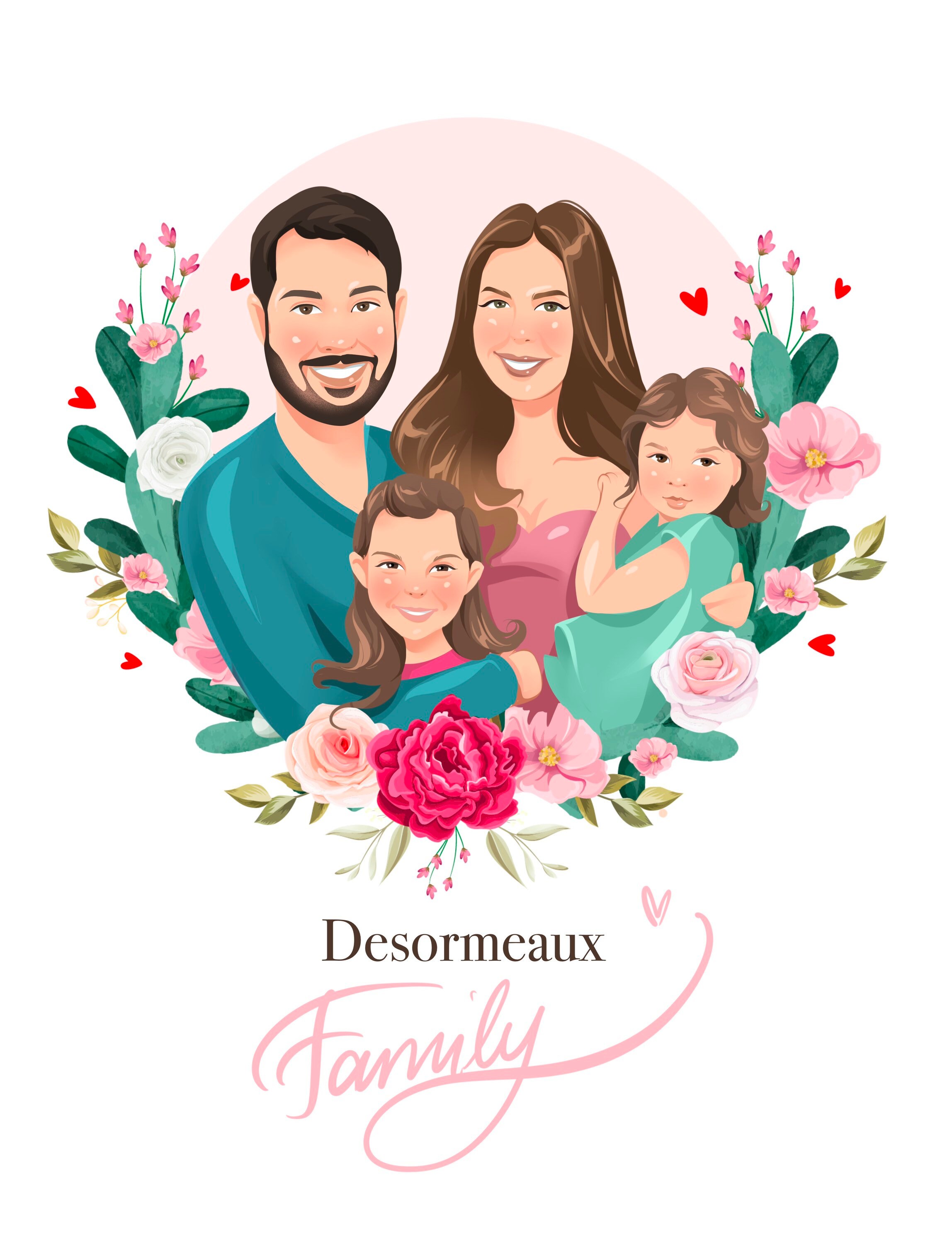 Custom Family Portrait Printable Digital Cartoon Illustration Persona